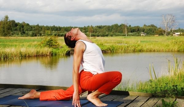 Stand up, be a part of your palms collectively and elevate your arms backward. Moreover, your spine must be pushed backward.